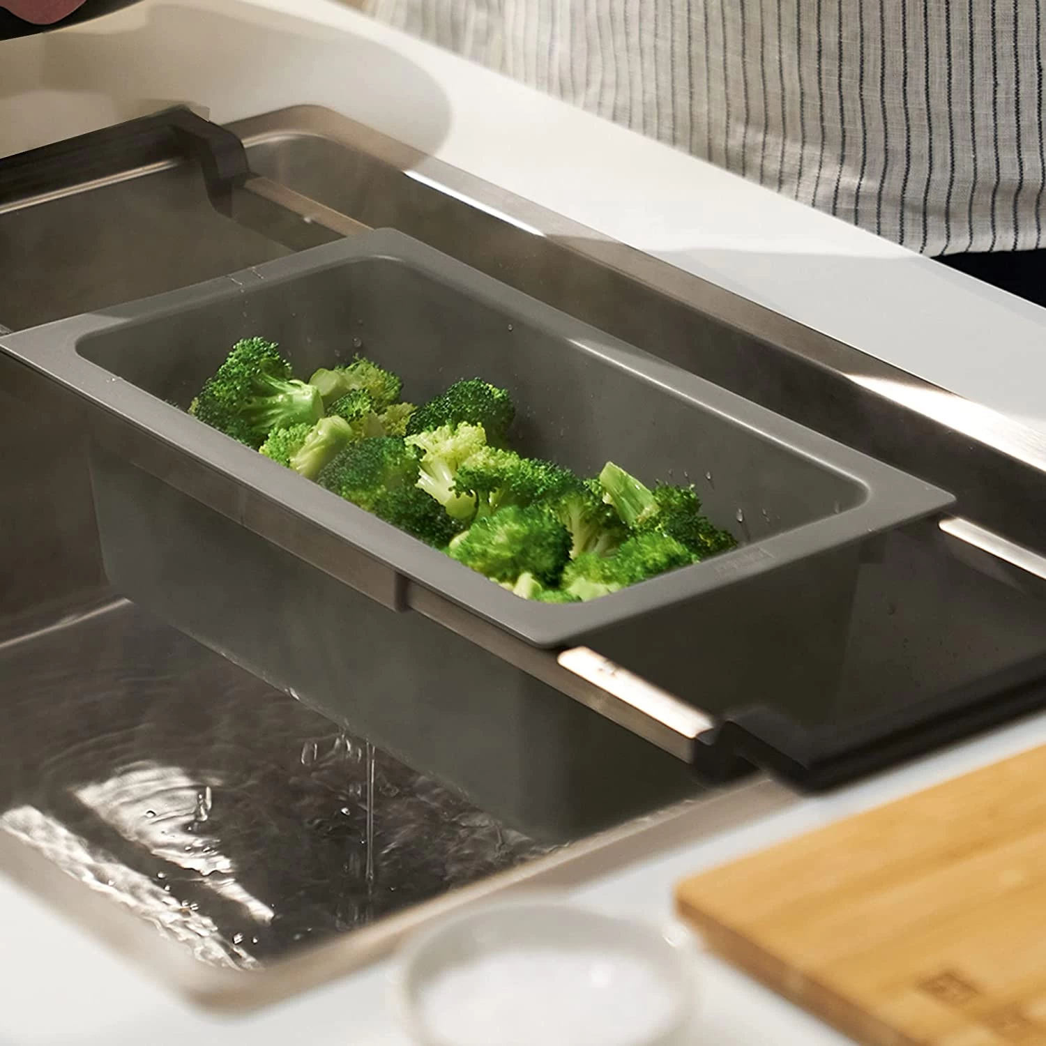 Caractéristiques du Set d’accessoires universel ALL IN Planche à découper Bambou 32×20 + Panier égouttoir PVC Noir Sanitized (ALLINSET-1) :