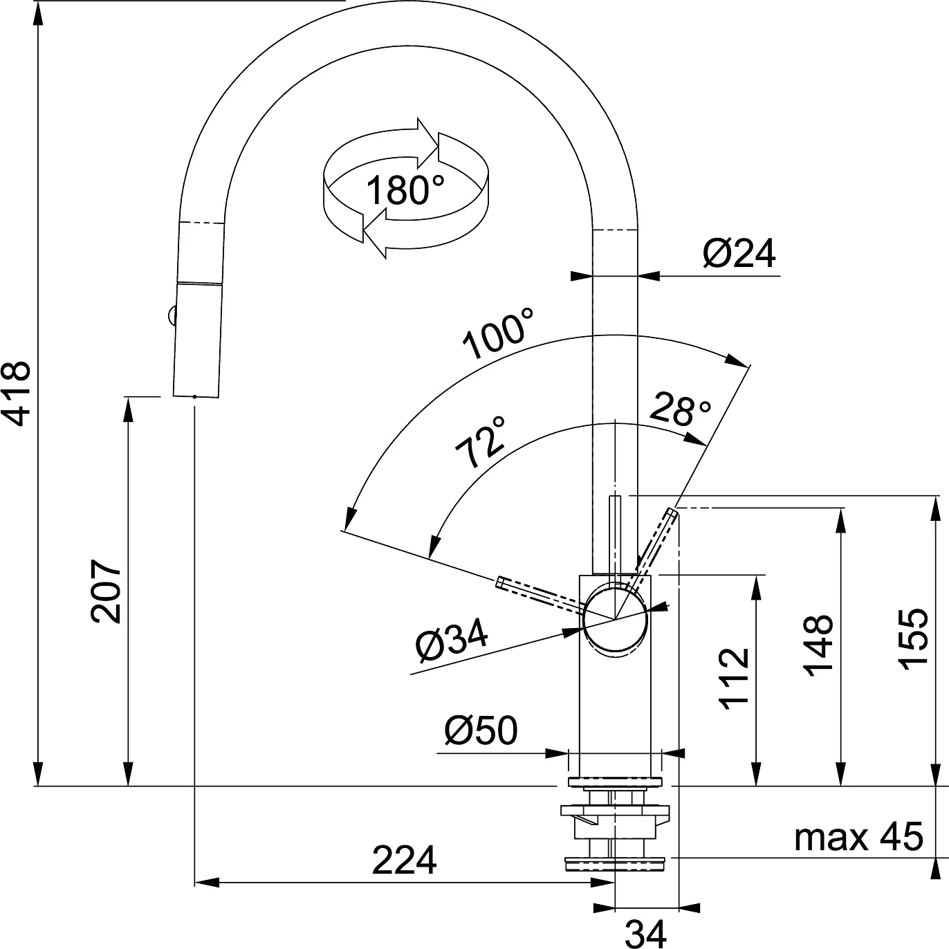 | Rotation du bec | 180° |