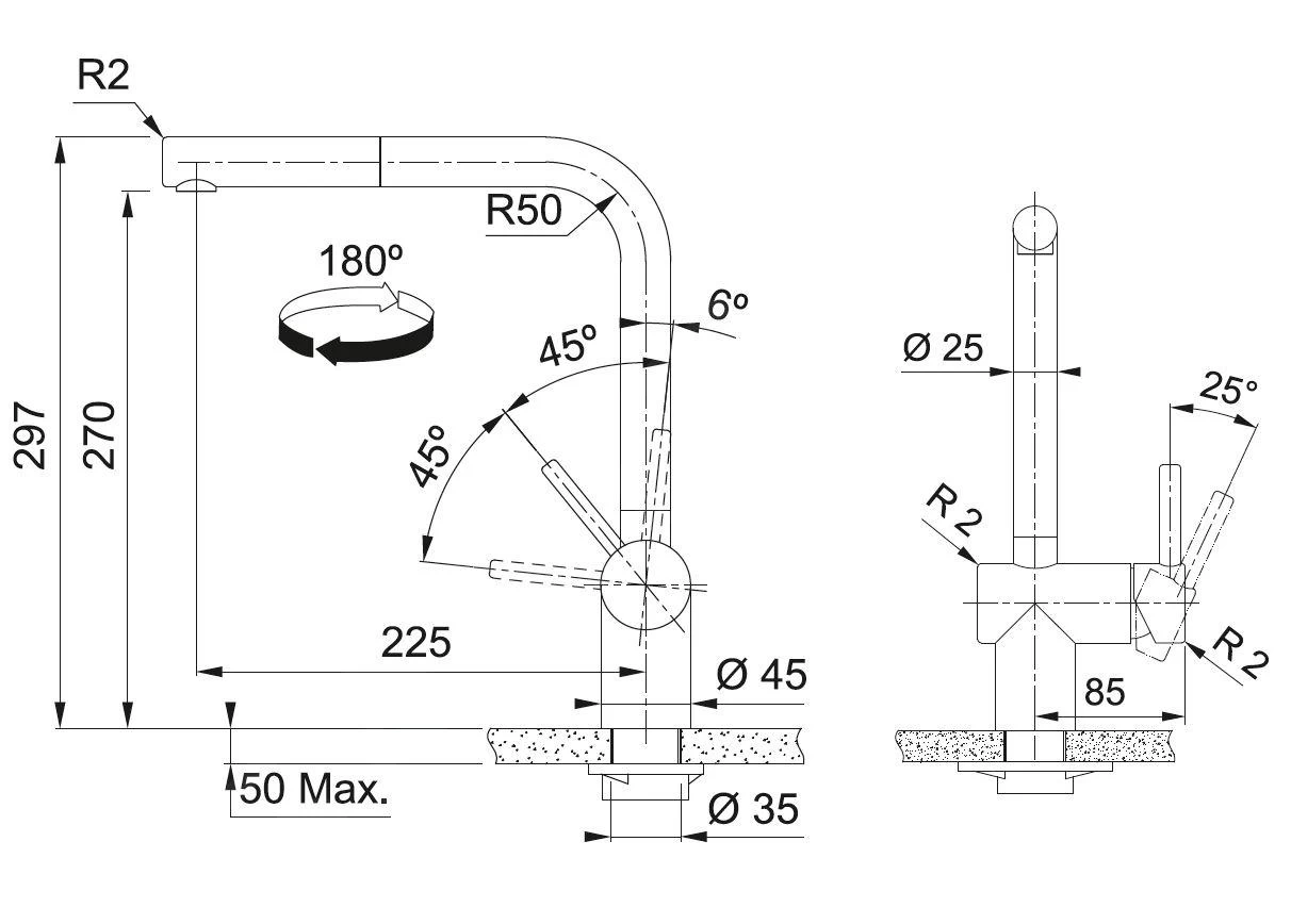 - ne convient pas pour une installation dans des éviers en acier inoxydable