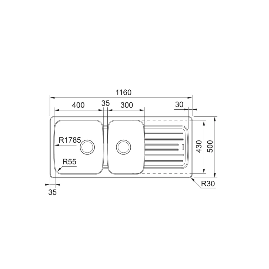 - Dimensions de l’évier : 116×50 cm