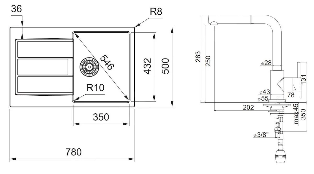 Évier en Tectonite Sirius 2.0 S2D 611-78 pour montage par le haut