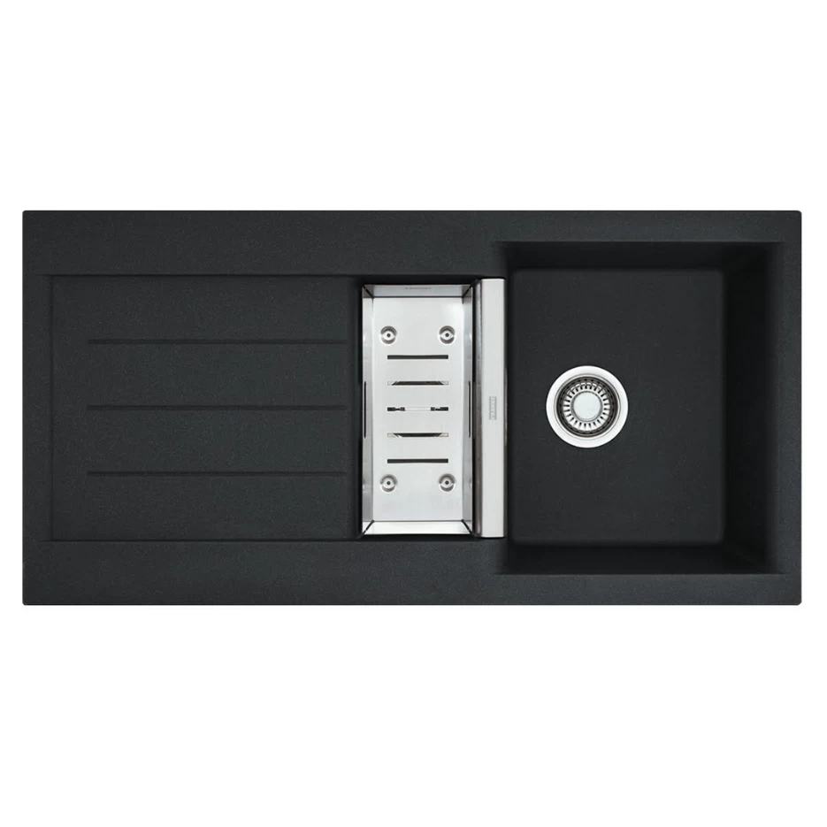 Caractéristiques de l’Evier de cuisine avec cuve + vide sauce intégré, 51x100cm, Fragranit+, Noir, Franke JAG 651 (114.0159.310) :