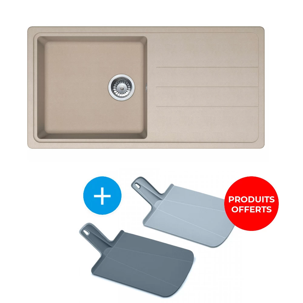 Caractéristiques de l’évier Janus JND 611-100 97x50cm avec égouttoir réversible, Tectonite, Crème (JND611-100KR) :