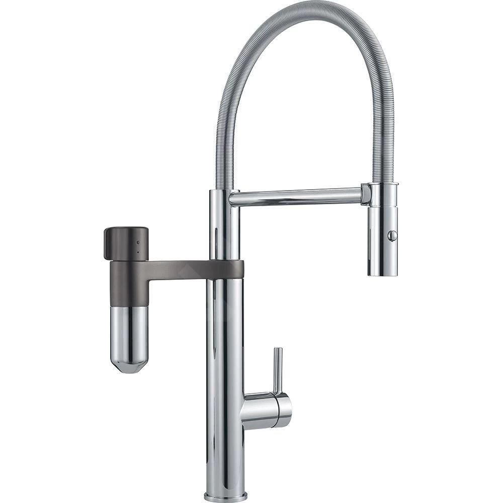 Franke Mitigeurs Filtrants – Vital Tap Mitigeur D’évier Avec Filtration D’eau Intégrée, Bec Flexible Et Douchette, Chrome/gun Metal 120.0621.230