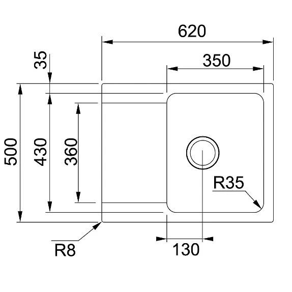 - Sans trou pour robinetterie (le trou peut être percé directement lors du montage)