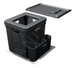 Les bacs 350, Trolley Vario et Easysort sont placés dans un tiroir à coulisse complète équipé d’un cadre longitudinal ou d’une paroi latérale haute. Nous recommandons les dispositifs à coulisse complète des entreprises Blum, Grass ou Hettich pour ces poubelles.