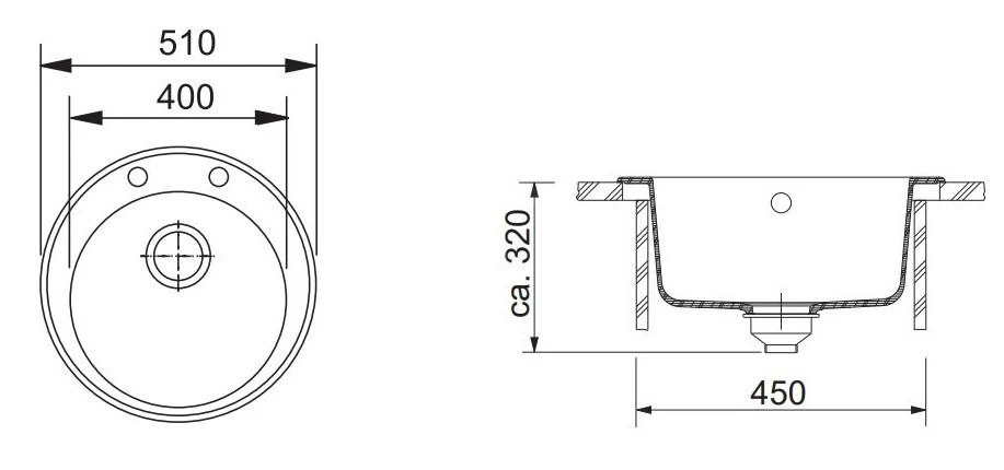 – préparation pour 2 trous – robinetterie et commande de la bonde à panier