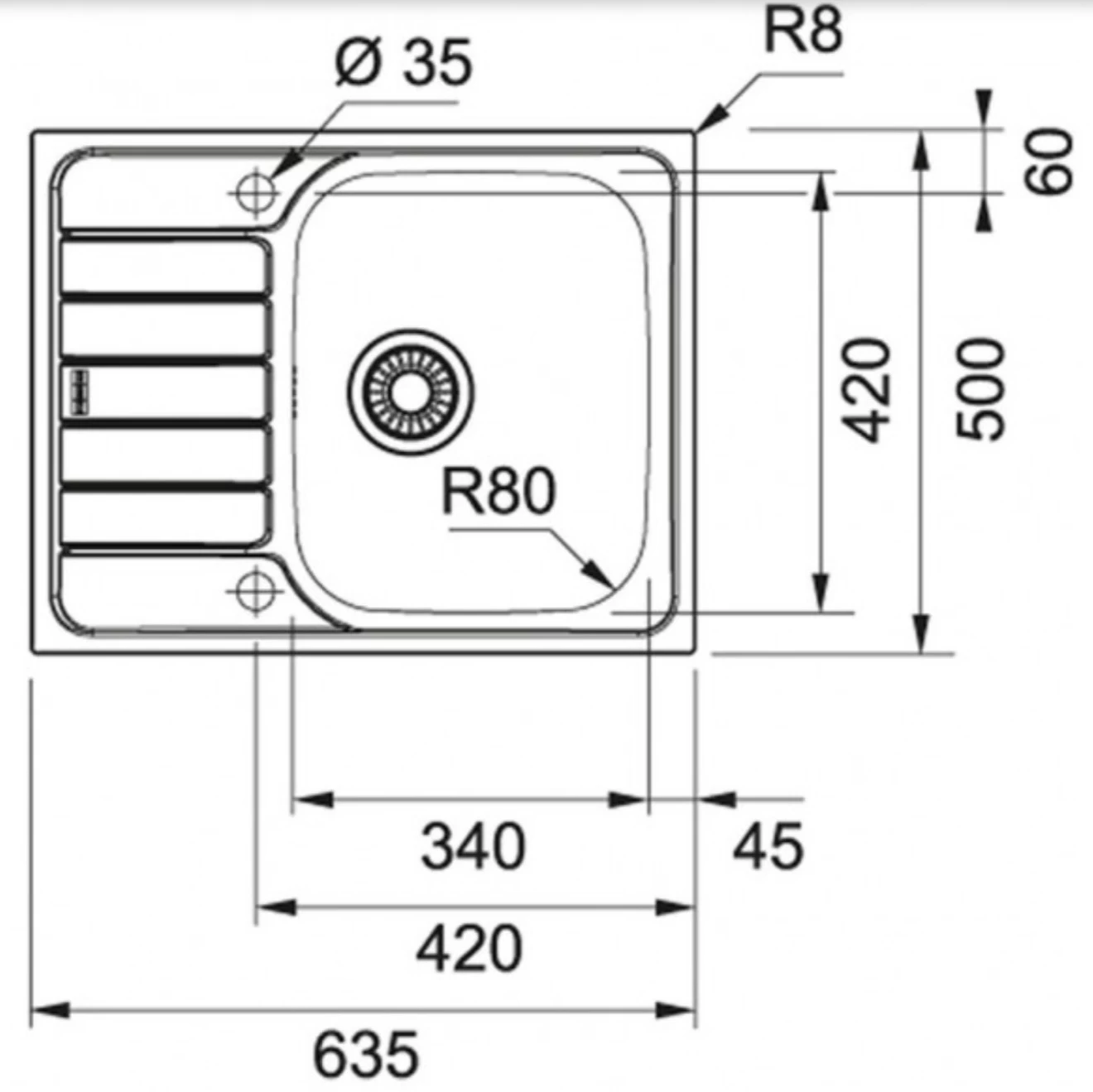 - Dimensions de l’évier : 63,5×50cm