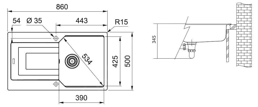 - dimensions de la découpe 824 × 464 mm (rayon 15 mm)