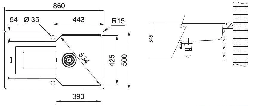 - dimensions de la découpe 824 × 464 mm (rayon 15 mm)