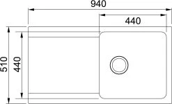 Franke Orion Évier Avec égouttoir Réversible OID 611-62 62x50cm, Tectonite, Blanc Artic (OID611-62B)